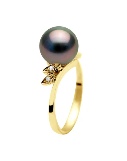 Regenboogring met geelgoud, diamanten en Tahitiaanse gekweekte parels