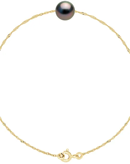 Prestige halsketting geelgoud en zwarte ronde Tahitiaanse cultuurparel
