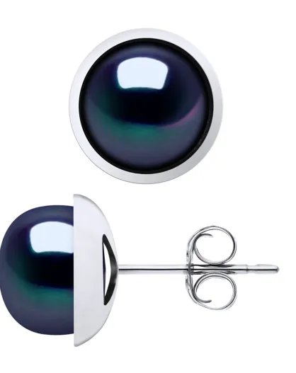 Oorbellen met gekweekte parels in witgoud en zoet water, zwarte knopen