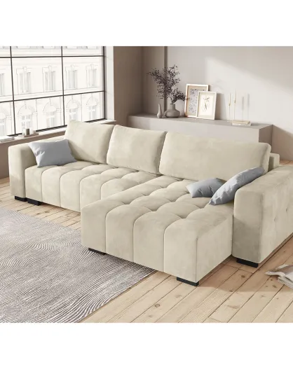 Omkeerbare hoekbank met kofferbak, converteerbaar fluwelen Luca 4-zits beige - 293x168x88 cm