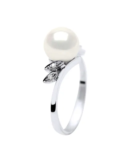 Witgouden ring, 0.04 ct diamanten en parelmoer ronde witte gekweekte zoetwaterparel