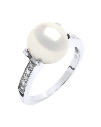 Witgouden armband, 0.10ct diamanten en parelmoer ronde witte gekweekte zoetwaterparel