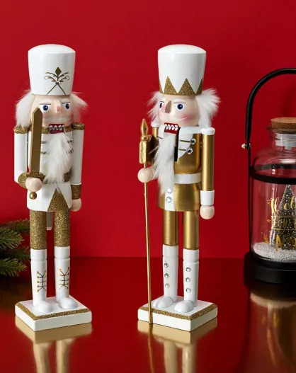 2 goud/witte hazelnootcracker figuren - 10x35,5x8 cm