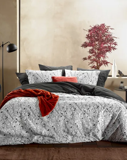Charlie dekbedovertrekset in perkal van 100% katoen, wit/zwart