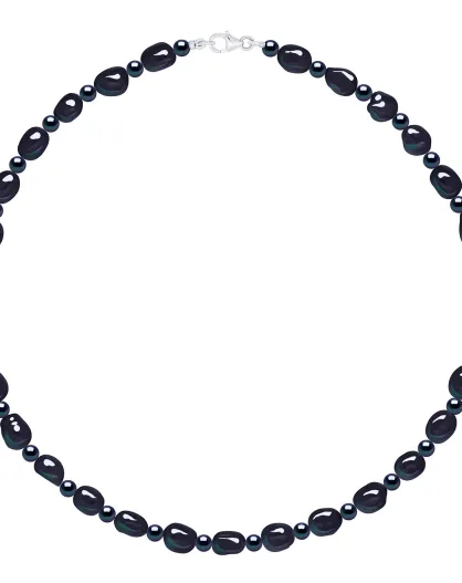 Halsketting in gerhodineerd zilver met zwarte barokke gekweekte zoetwaterparels