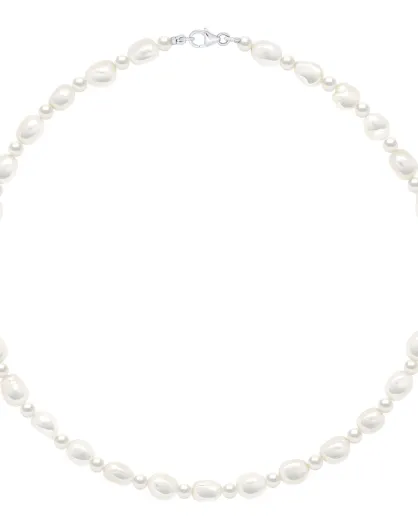 Halsketting in gerhodineerd zilver met natuurlijke parelmoer witte barokke zoetwaterparels