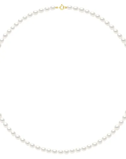 Geelgouden en zoetwaterparelketting met witte rijstkorrels van parelmoer