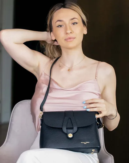 Zwarte Ella leren schoudertas - 24,5x17x9 cm