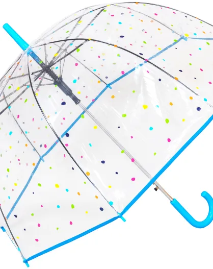 Bell paraplu - Automatische opening - Blauwe handgreep - Transparant gekleurde stippen