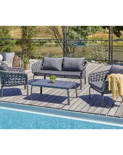 Camargue 4-zits tuinmeubilair in geweven touw en antracietgrijs aluminium