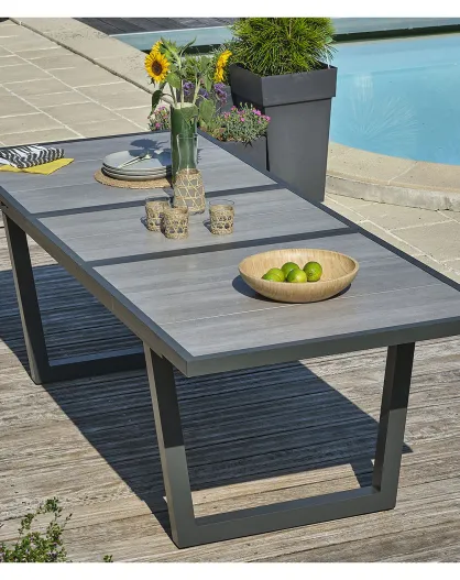 Olhos tuintafel met verlengstuk in aluminium en antracietgrijs keramiek - 191/251x95x75 cm