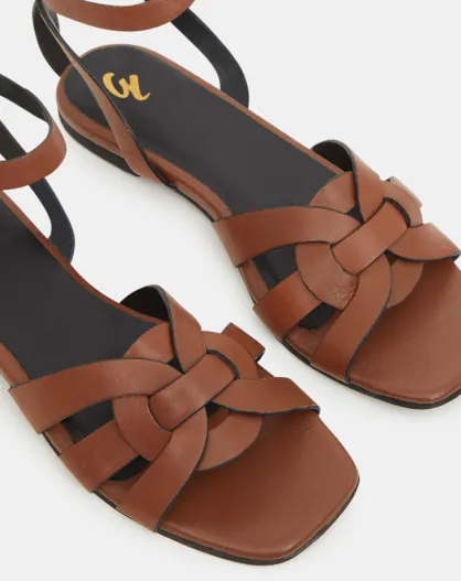 Camelkleurige leren sandalen met enkelbandje