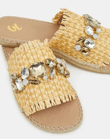 Platte muiltjes van gevlochten vezels, beige sieraden