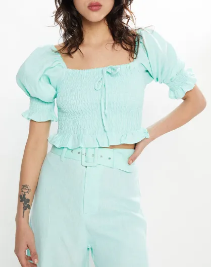 Top 100% linnen Lenora aquagroen