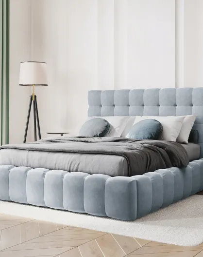 Lichtblauw fluwelen bed Bali met opbergdoos - 180x200 cm