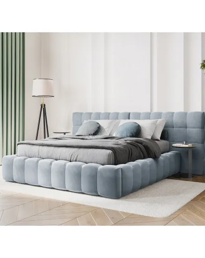 Lichtblauw fluwelen bed Bali met opbergdoos - 200x200 cm