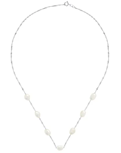 Witgouden halsketting met natuurlijke witte barokke gekweekte zoetwaterparels