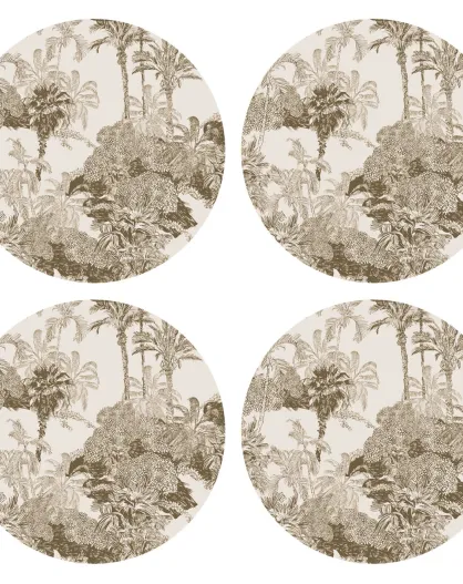 4 ronde placemats met sepiapalmprint - D.40 cm