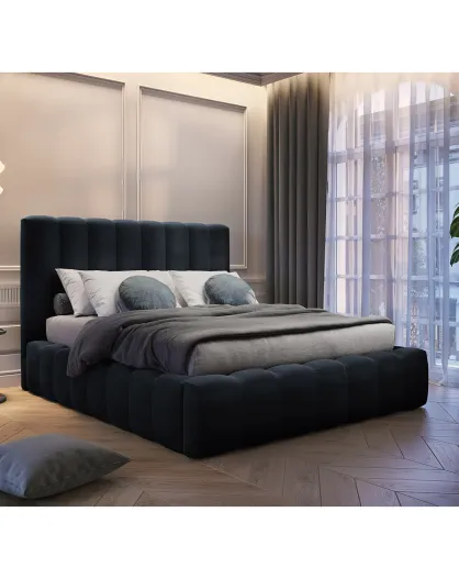 Fluwelen borstbed met donkerblauw Gina hoofdeinde - 140x200 cm