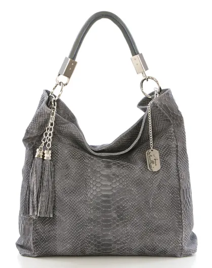 Grijze leren handtas van Rosallia - 38x36x14 cm