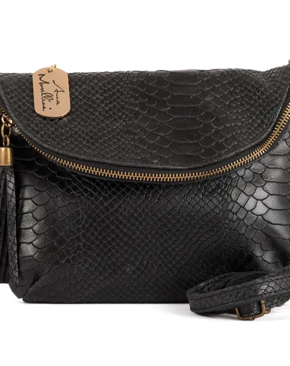 Lydia zwarte leren schoudertas - 22x18x2 cm