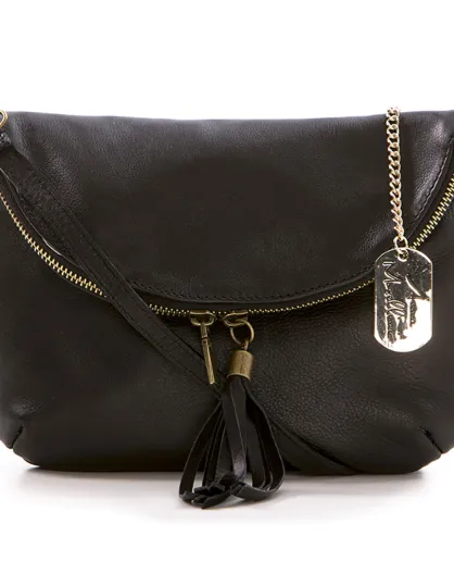 Alice zwarte leren schoudertas - 22x18x2 cm
