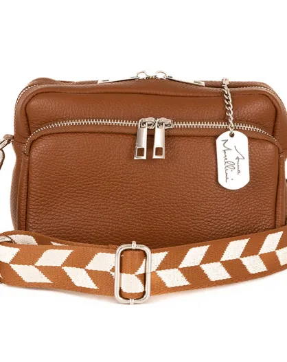 Erminia Cognac leren schoudertas - 22x17x9 cm