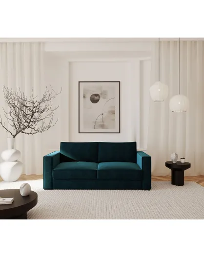 Lexy slaapbank in pauwblauw fluweel - 226x100x85 cm