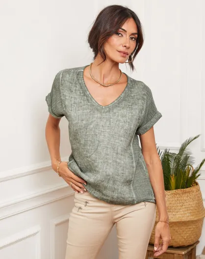 Fabioza kaki top van 100% linnen