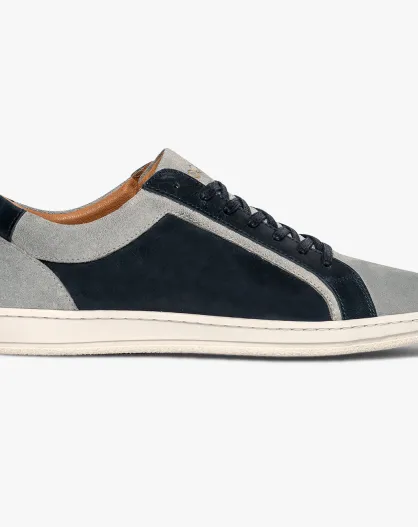 Kerrien blauw/grijze leren sneakers van leer en fluweel
