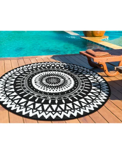 Maori rond zwart/wit buitentapijt - D.250 cm