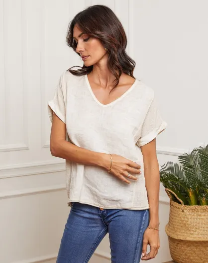 Fabioza beige top van 100% linnen