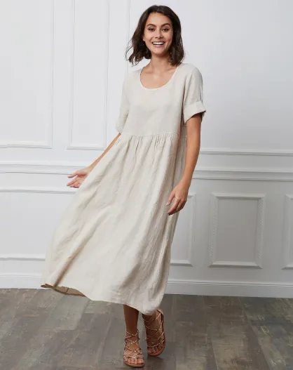 Gustavo beige jurk van 100% linnen