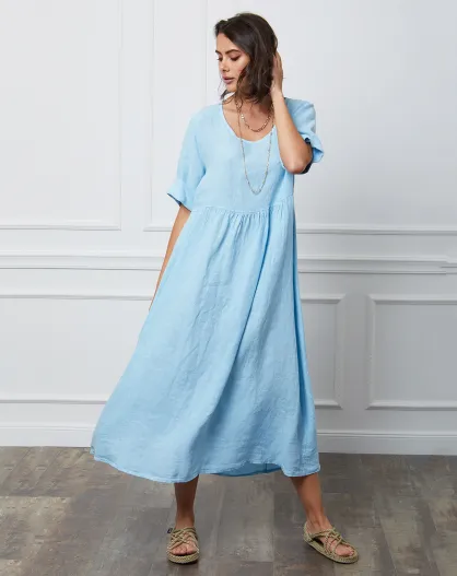 Gustavo 100% linnen jurk hemelsblauw blauw