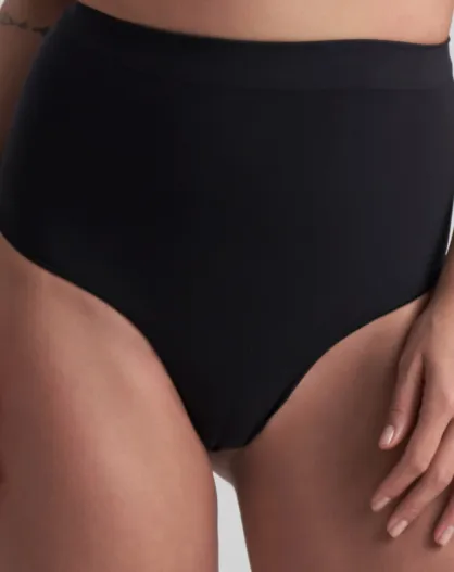 Zwarte, zacht aanvoelende string met hoge taille en hoge taille