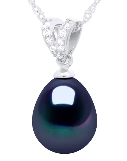 Halsketting met zoetwaterparels van gerhodineerd zilver, zirkoniumoxide en zwarte Tahiti-peer