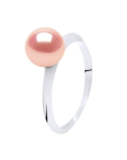 Ring van gerhodineerd zilver en natuurlijke roze ronde gekweekte zoetwaterparel