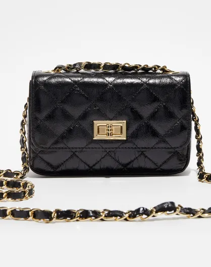 Avila gelamineerde zwarte leren schoudertas - 18x12x5 cm