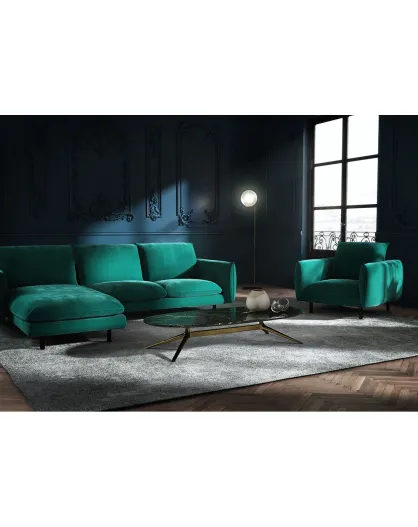 Isak fluwelen bank in bosgroene linkerhoek - 235x92/160x85 cm