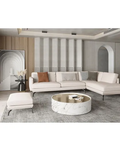 Unic beige stoffen bank met brede rechte hoek - 300x202x83 cm