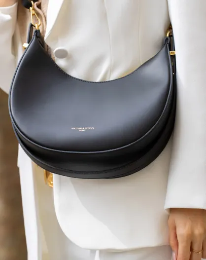 Zwarte Bruna leren schoudertas - 25x15x8,5 cm