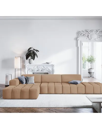 Linkerhoekbank Velours Luc 5 Zits donkerbeige - 341x166x70 cm
