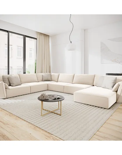 Panoramische linkerhoekbank Vanda Velours Vanda 8-zits lichtbeige - 384x284x85 cm