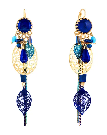 Goud/blauwe oorbellen uit Cadician