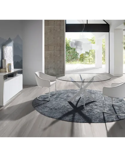 Eettafel met gehard glazen blad 4 zitplaatsen transparant/wit - D.110x75 cm