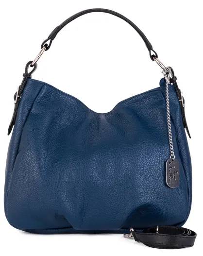 Marineblauwe leren schoudertas van Noemi - 30,5x26x9 cm