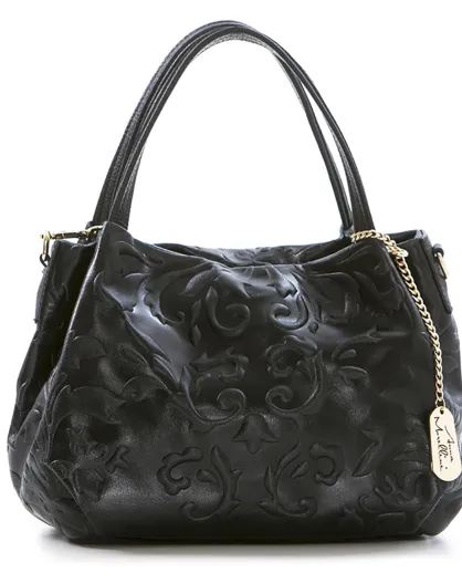 Zwarte leren handtas van Clarissa - 28x20x12 cm