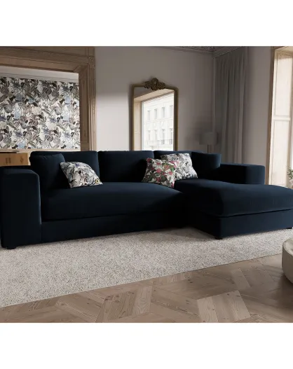 Trendy fluwelen 5-zits donkerblauwe 5-zits hoekbank rechts - 282x174x72 cm