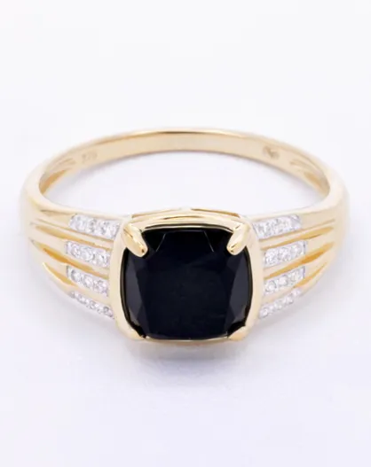 Eliana 0.072 ct diamanten ring en 1,62 kt zwarte agaat geel goud