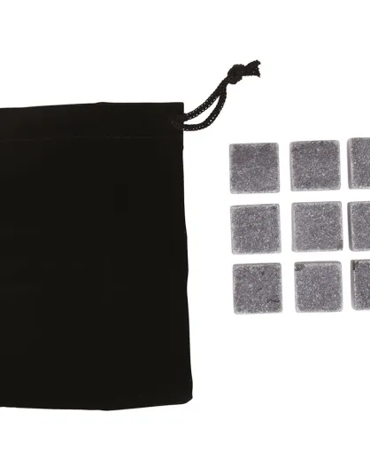9 zilveren lichtgrijze whiskystenen - 2,5x2,5 cm